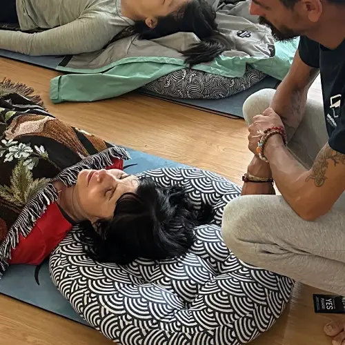 Nervous system regulation, coaching, breathwork, inner work, rebirthing, hypnotherapy, somatic practices, shamanic journeying, sound healing, detoxes, hapeh, cacao, dharma exploration and ancient practices.